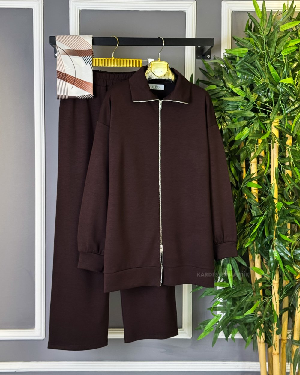 Basic Çift Fermuarlı İkili Takım Kahverengi