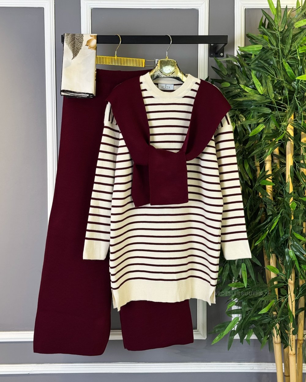 Yeni Sezon Çizgili Atkılı Triko Takım