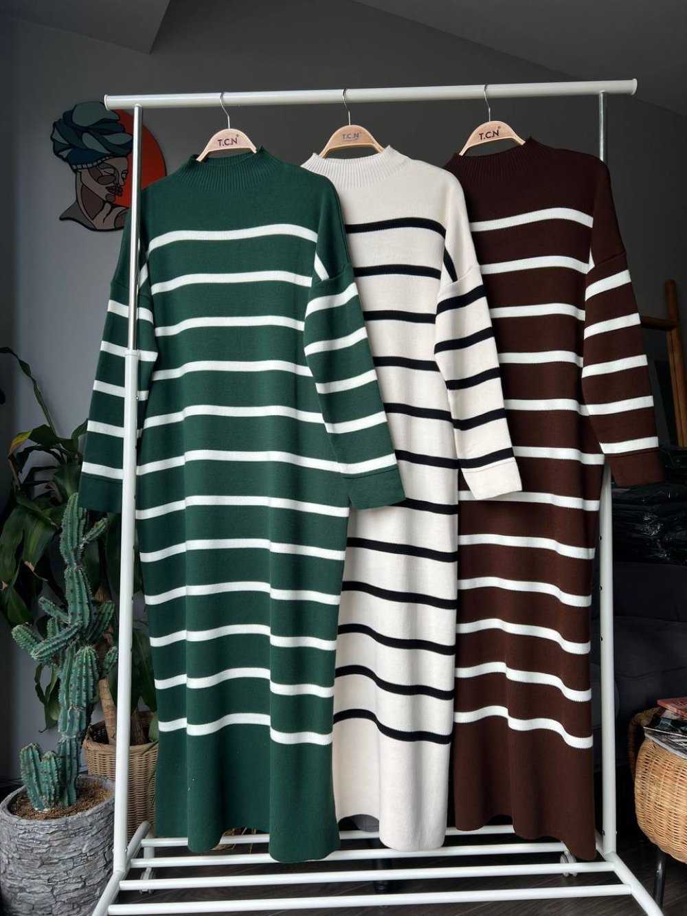 Yeni Sezon Çizgili Triko Elbise