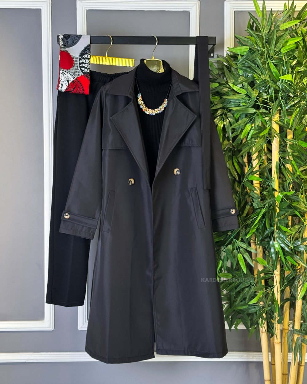Düğmeli Trençkot Siyah