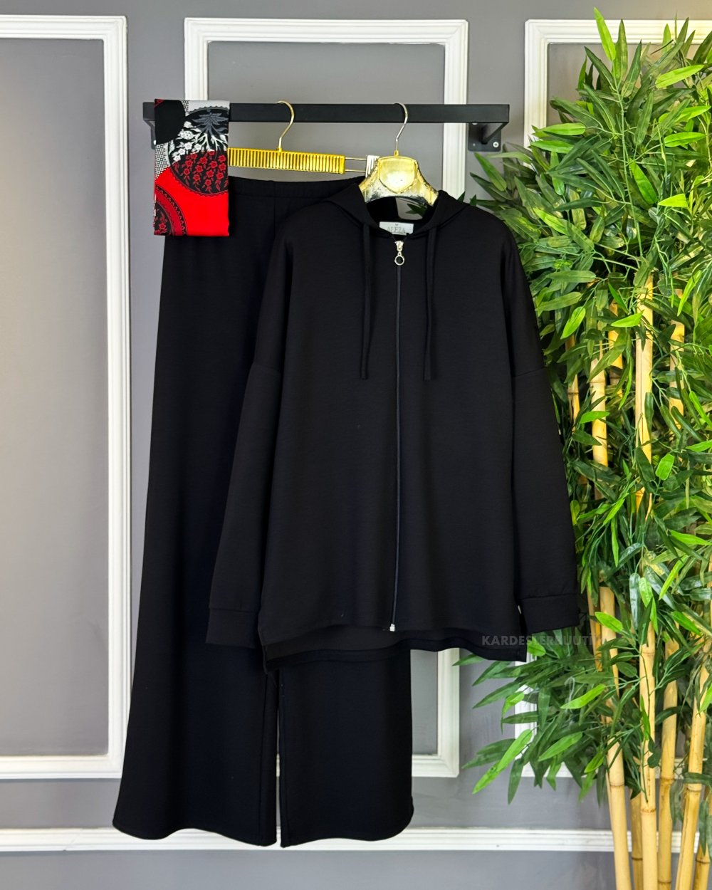 Fermuarlı Basic İkili Takım Siyah