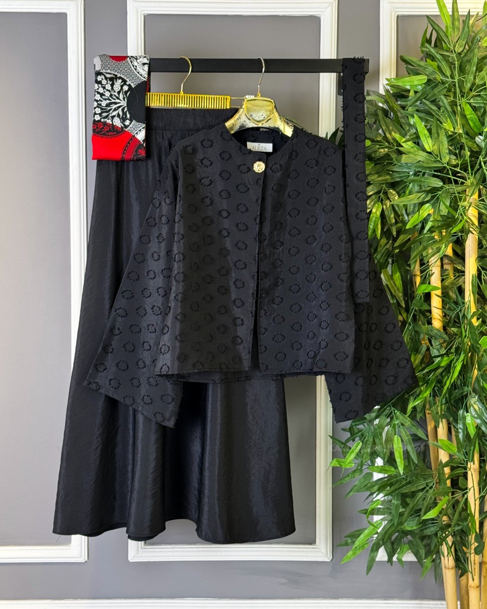 Gold Düğme Detaylı Etekli Takım Siyah