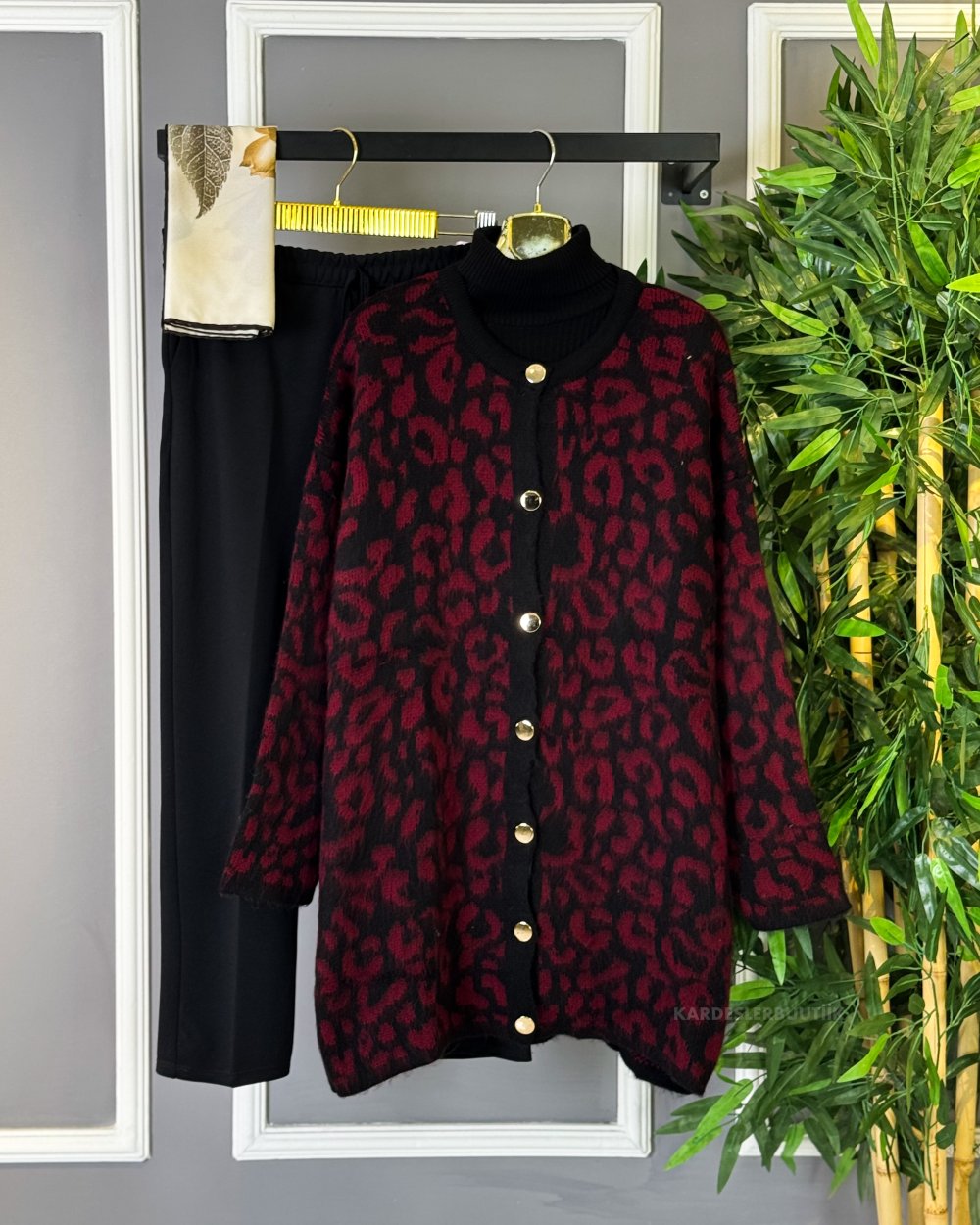 Leopar Triko Hırka Bordo
