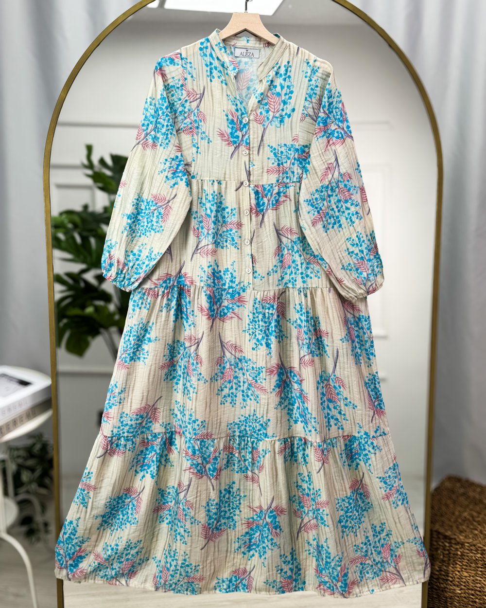 Modal Desenli Elbise Mavi