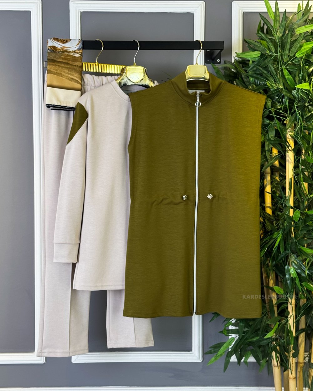 Üçlü Oyso Yelekli Takım Yağ Yeşili