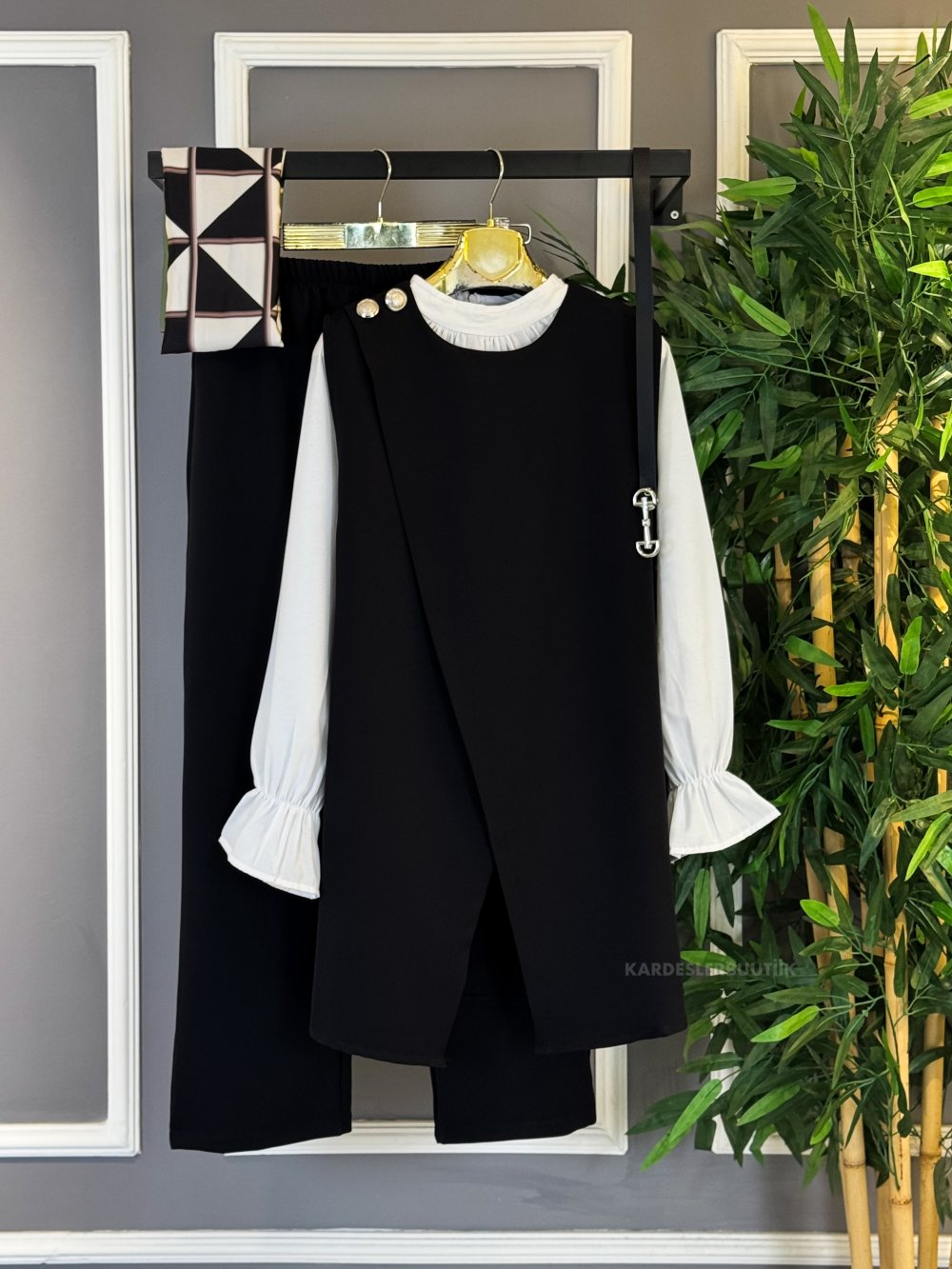 Üçlü Yelekli Kemerli Takım Siyah